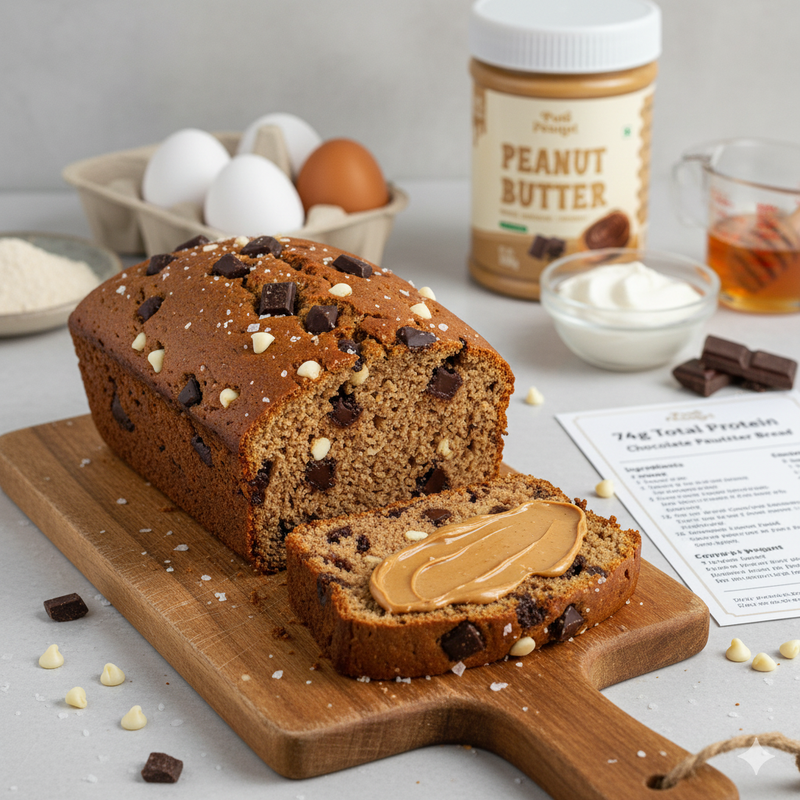 High Protein Peanut Butter Chocolate Bread (74g Total)